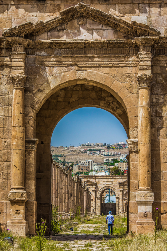 Dating back to the second century AD, Jerash is a spectacularly well-preserved provincial Roman city that was unearthed as recently as the 1920s. The main ruins, lying west of the Zarqa River, include the colonnaded street, the south and north theaters, the Temple of Zeus, and an oval piazza. Jerash also contains 14 churches with fine mosaics from the Byzantine era. Jerash is north of Amman, about halfway between Irbid and the capital, and is billed as one of the nation's top two attractions--the other being Petra.